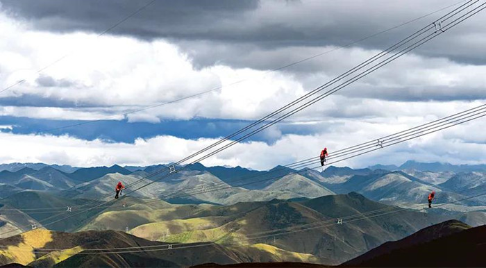 圖為2021年6月11日,國家電網(wǎng)四川送變電公司黨員先鋒隊(duì)員對四川省甘孜州兩河口水電站500千伏送出工程線路進(jìn)行消缺驗(yàn)收。 國務(wù)院國資委供圖 劉湘釩/攝