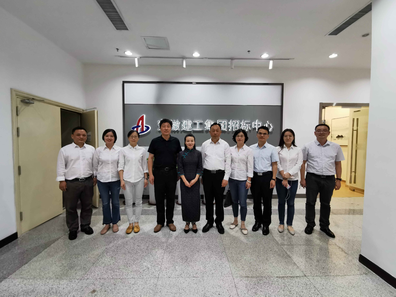 近日,安徽省招標投標協會秘書長王燕,協會副會長、馬鋼集團招標公司總經理陶煒等一行八人到訪安徽建工,集團招標中心主任陳傳文、副主任周正平等在安建國際大廈27樓會議室與來訪客人進行了深入座談交流。