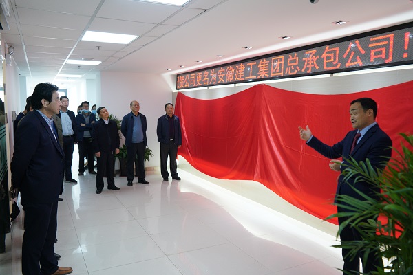 3月25日上午9時,安徽建工集團總承包公司在安建國際大廈25樓舉行了簡短而喜慶的揭牌儀式,標志著安徽建工集團工程建設分公司正式更名為安徽建工集團總承包公司。此次更名,旨在貫徹集團一屆七次職代會暨2020年工作會議部署,落實集團增強總部的資源整合能力、帶動力、影響力,向工程總承包等產(chǎn)業(yè)鏈上游轉型的戰(zhàn)略部署,打造一流的工程總承包企業(yè),推動集團本部做強做優(yōu)做大。