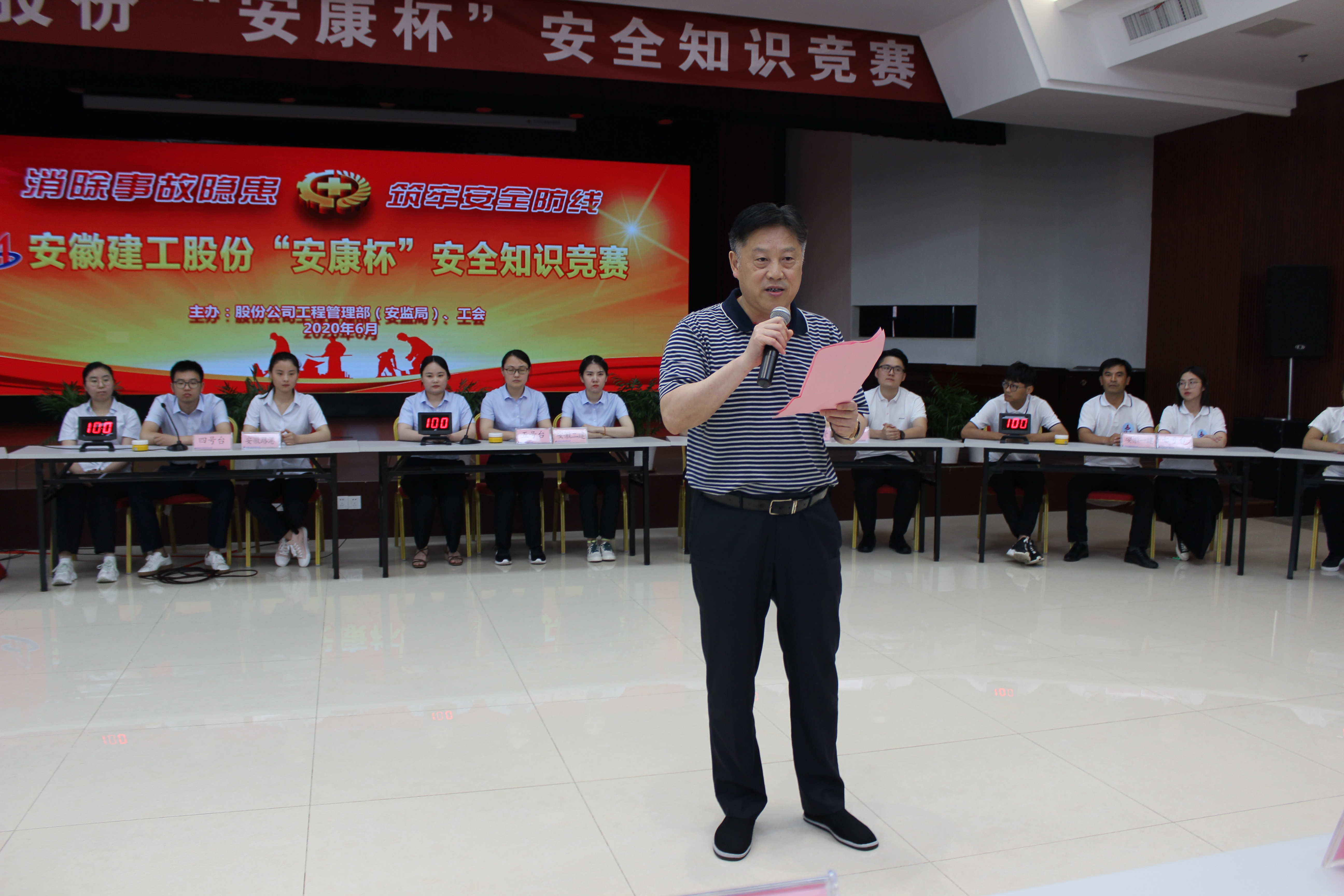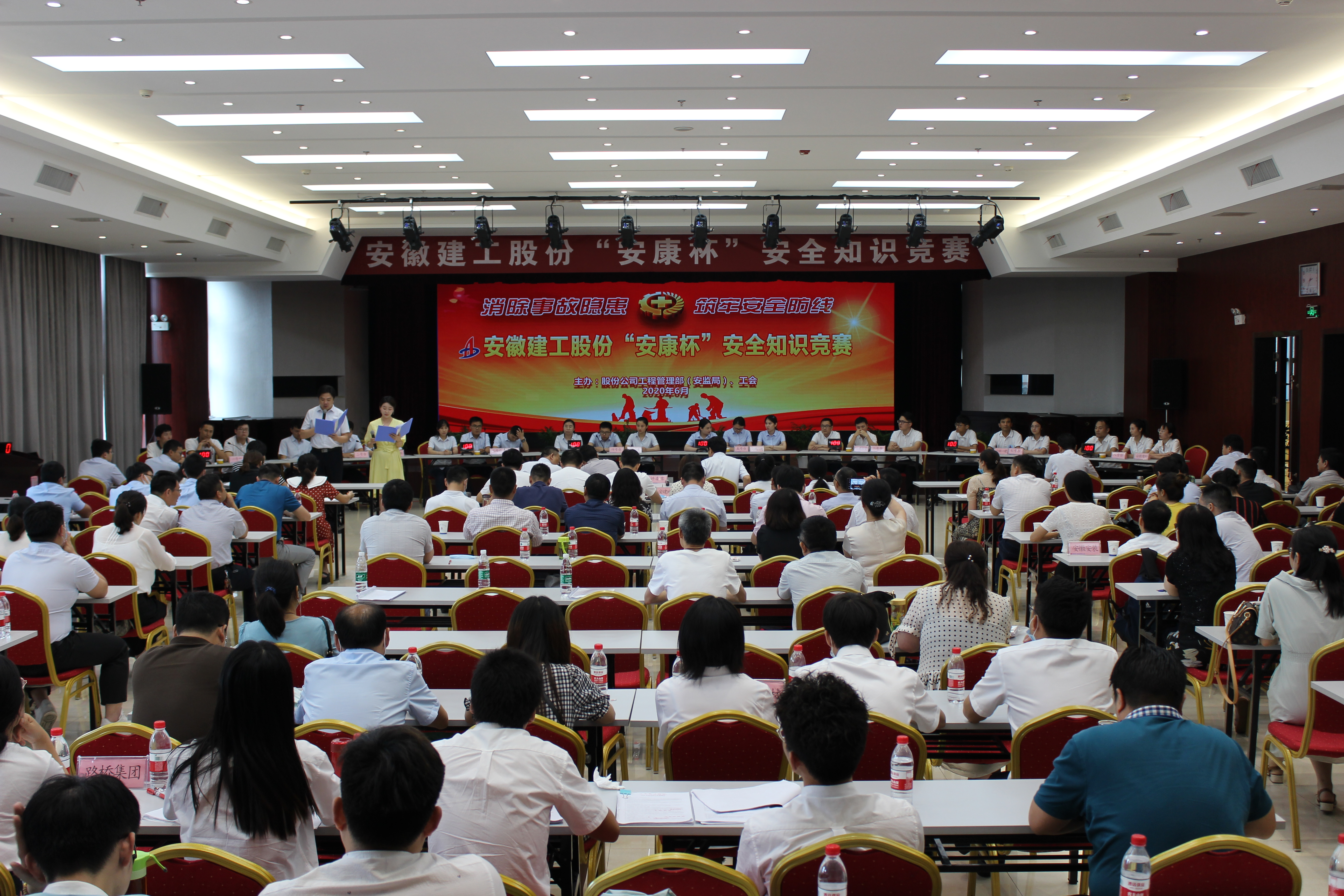 6月12日,安徽建工股份2020年“安康杯”安全知識競賽在安建國際大廈三樓報告廳舉行??毓牲h委委員、股份黨委副書記、安委會主任、總經(jīng)理許克順出席活動并致開幕詞,省建設(shè)建材工會主任程德旺蒞臨活動現(xiàn)場。股份公司安監(jiān)局、工會全員,所屬各單位分管安全領(lǐng)導、工會、安全部門負責人等參加了本次活動。
