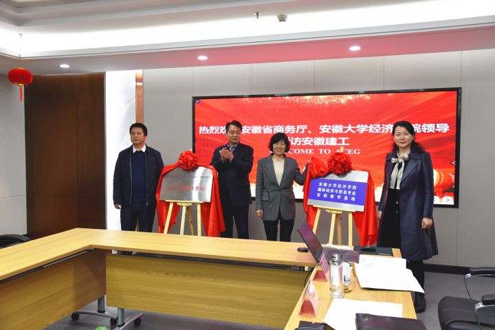簽約儀式后,孫永彬、田淑英、華德亞、朱金蓉共同為安徽大學(xué)經(jīng)濟(jì)學(xué)院國貿(mào)專業(yè)實踐教學(xué)基地及建工股份碩士生導(dǎo)師工作站揭幕,顧廣玲和華德亞為邢應(yīng)梅、胡海濤頒發(fā)安徽大學(xué)國際商務(wù)碩士專業(yè)學(xué)位研究生兼職導(dǎo)師聘書。