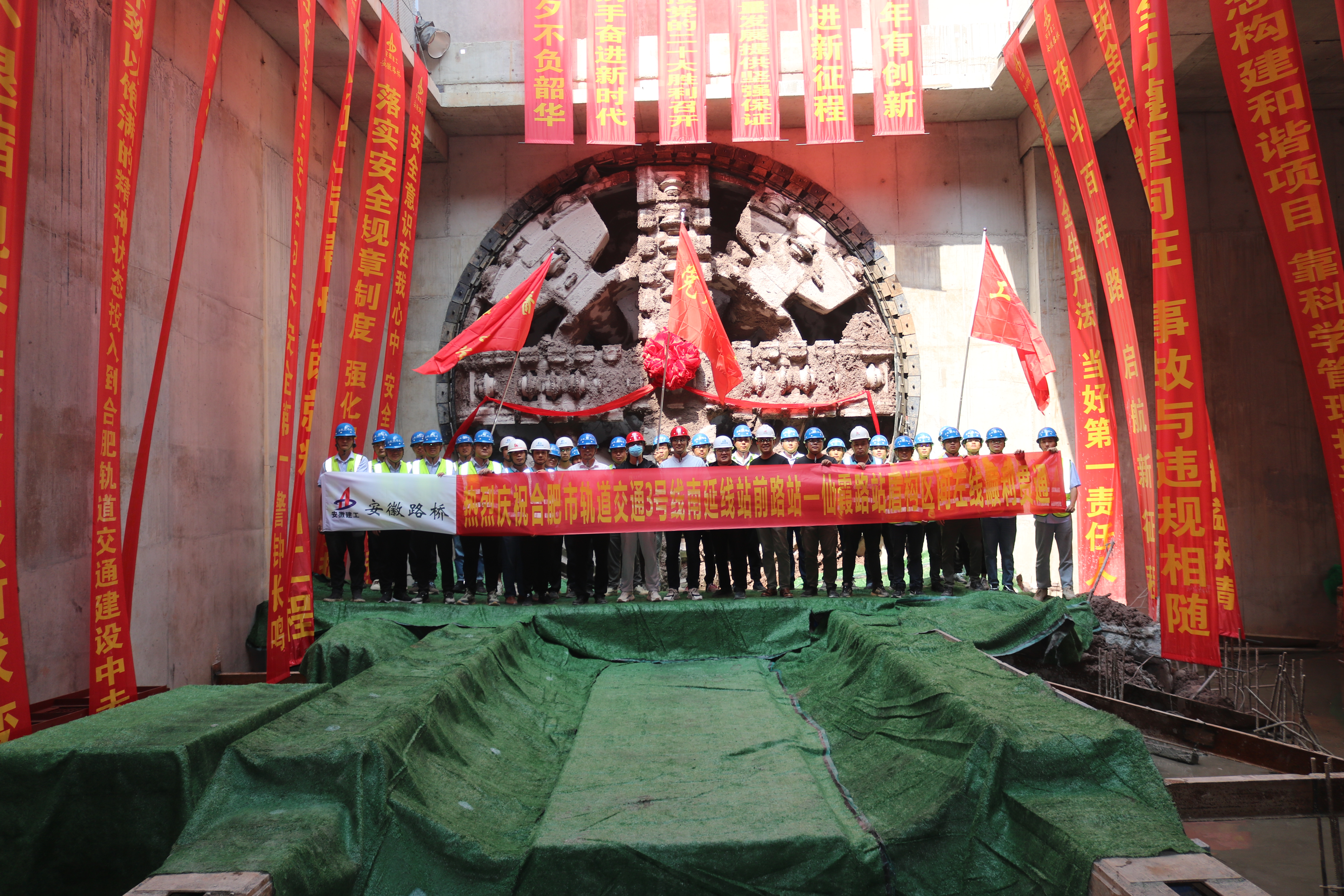 軌道交通3號線南延線TJ02標(biāo)是安徽省公路橋梁工程有限公司中標(biāo)承建第二個軌道交通項目。項目主要工程為站前路站、仙霞路站、站-仙區(qū)間、仙-青區(qū)間等土建和機(jī)電施工。目前,已完成車站主體封頂和區(qū)間貫通工作。自2020年9月份開工以來,弘揚(yáng)“自立自強(qiáng)、勇往直前、一次成優(yōu)”的盾構(gòu)精神,不懼挑戰(zhàn)敢為人先、不畏困難任事?lián)?dāng),取得顯著成效。項目集體先后榮獲全國發(fā)明、實用新型等專利4項;省住建系統(tǒng)“學(xué)雷鋒示范點(diǎn)”稱號、省住建廳“紅色工地”稱號,全省工人先鋒號稱號。