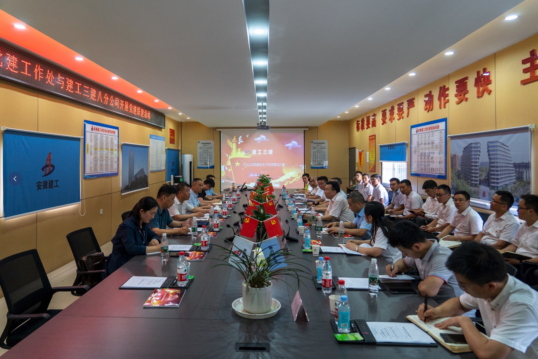為深入貫徹落實主題教育工作要求,創(chuàng)新基層黨建工作載體,構(gòu)建雙向促進、共同提高的黨建工作格局,7月6日,省國資委黨建工作處黨支部走進建工三建八公司大圩金葡萄家園二期2-A和2-B地塊工程項目,開展黨建聯(lián)建活動。省國資委黨建工作處處長、黨支部書記段海出席并講授專題黨課。建工控股黨委委員、紀委書記、監(jiān)察專員王汪苗參加活動。