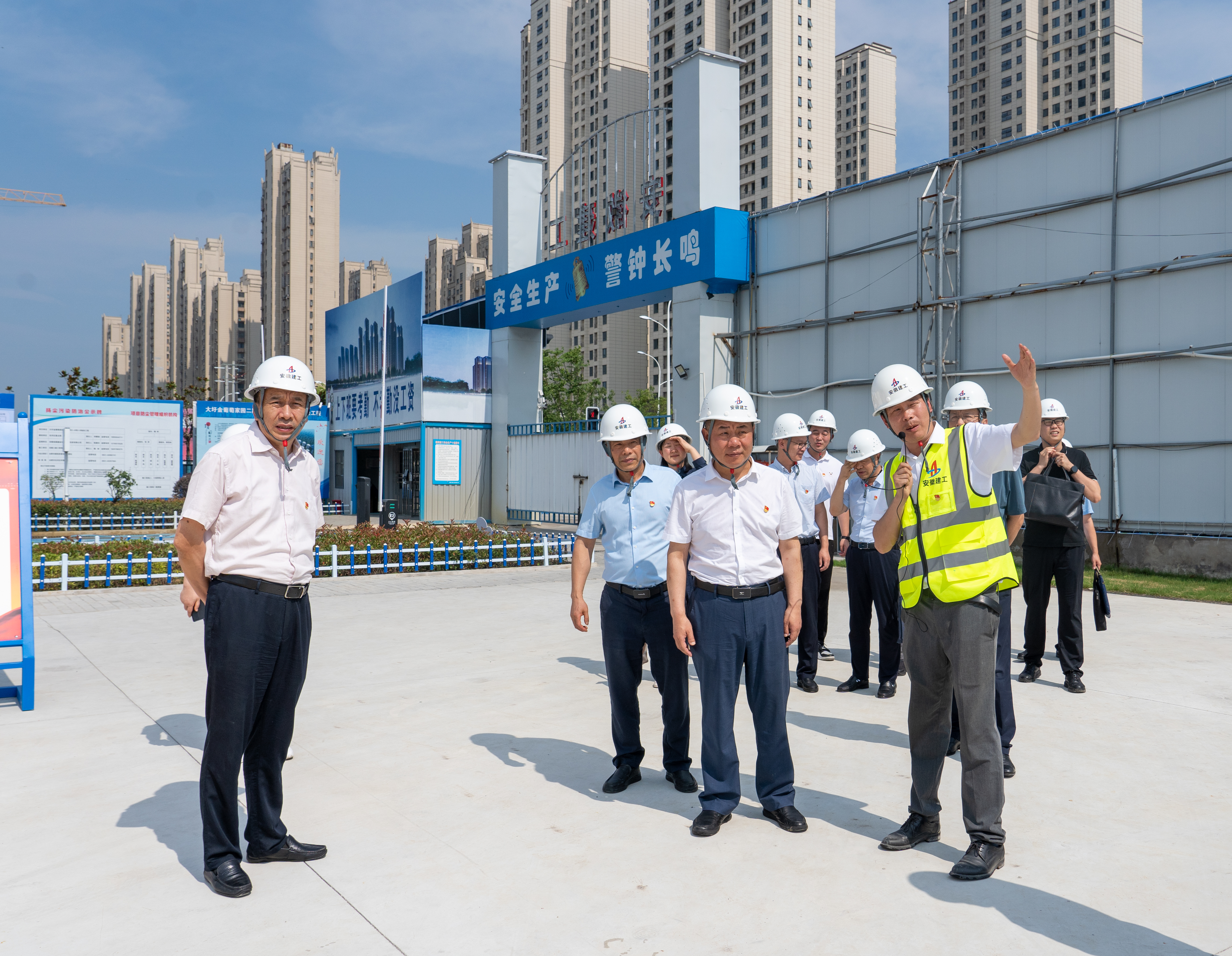 段海一行先后深入項目現(xiàn)場和黨員活動室,對項目樣板展牌、智慧展廳、鋁模爬架、裝配式等新技術(shù)、新工藝以及基層黨建活動開展情況進行觀摩和了解,對項目生產(chǎn)經(jīng)營工作和“彩虹扣”黨建品牌、黨員1+N監(jiān)督崗等特色活動的開展表示肯定。