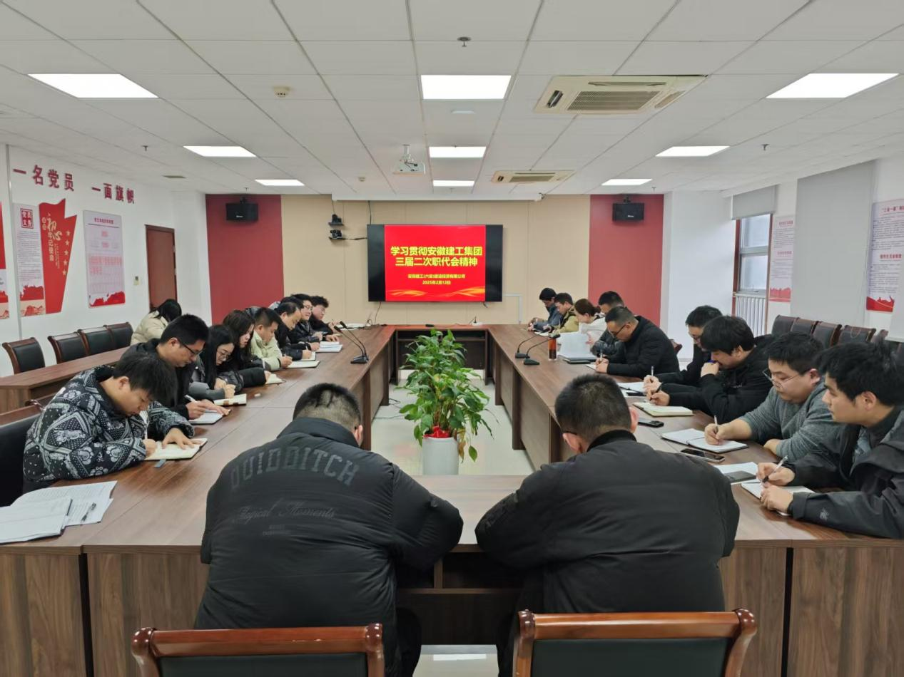 2月9日至12日,安徽建工集團控股有限公司三屆二次職工代表大會暨2025年工作會議勝利召開。會后,各單位通過中心組學(xué)習、專題會議等多種形式,傳達學(xué)習集團黨委書記、董事長楊善斌作的題為《改革創(chuàng)新 擔當作為 強化企業(yè)管理 加快轉(zhuǎn)型升級 奮力推進安徽建工集團高質(zhì)量發(fā)展大發(fā)展》講話精神和集團黨委委員、總會計師王淑德作的《集團年度工作報告》精神,迅速掀起學(xué)習宣貫熱潮。