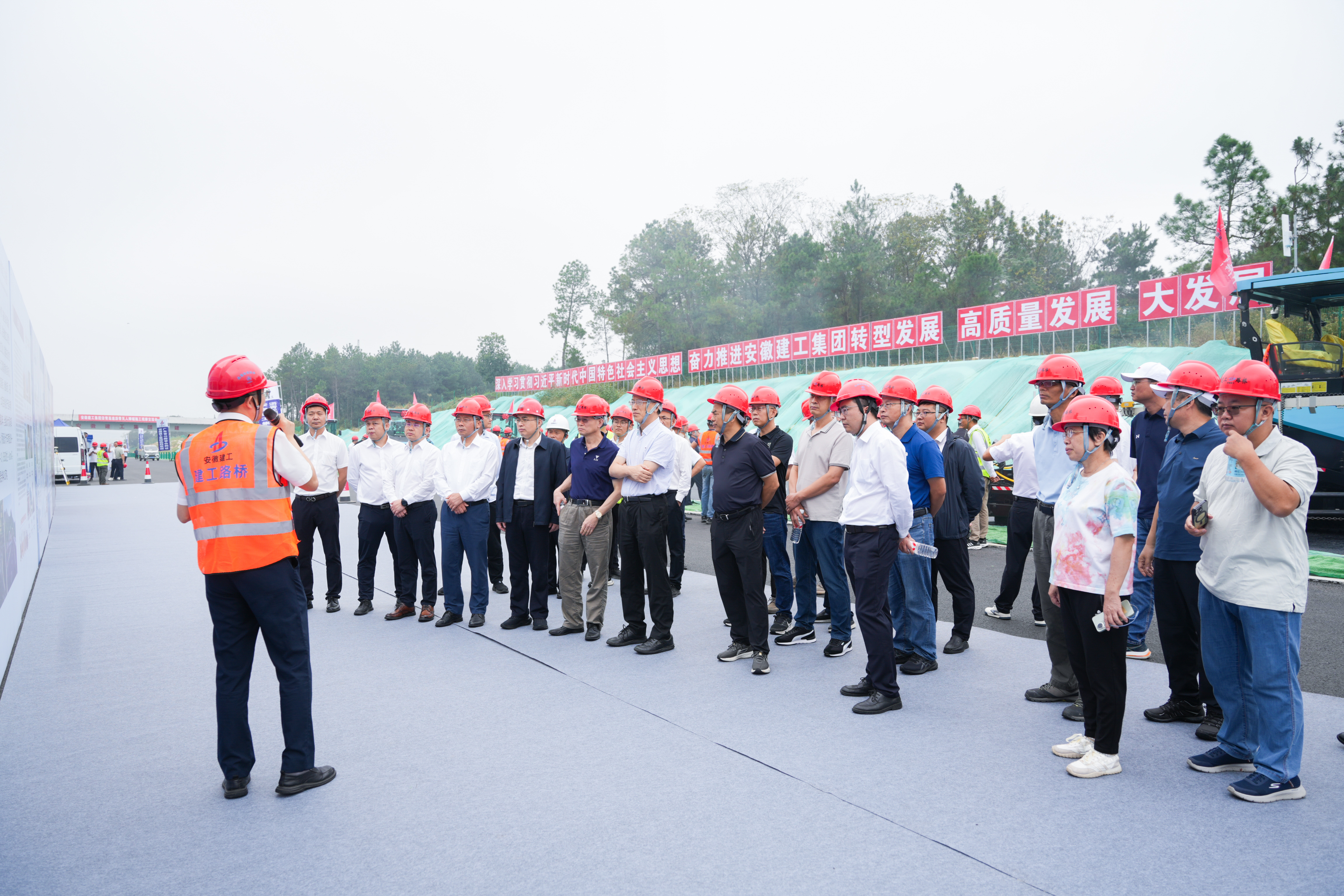 10月12日上午,集團(tuán)投資建設(shè)的第三條高速公路 —— 涇青高速項(xiàng)目瀝青無(wú)人攤鋪施工觀摩交流會(huì)在安徽涇縣舉行。建工股份黨委副書(shū)記、總經(jīng)理錢(qián)申春出席并主持交流會(huì),廣東省公路學(xué)會(huì)理事長(zhǎng)洪顯誠(chéng)及廣東省內(nèi)十余家交通建設(shè)企業(yè)代表共40余人參加。活動(dòng)采用“現(xiàn)場(chǎng)觀摩+交流研討”形式,共同見(jiàn)證智能建造技術(shù)在集團(tuán)高速公路建設(shè)中的實(shí)踐應(yīng)用。